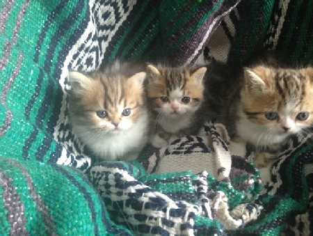 Gidget and Kubi, our first kittens, (below). Both were Minuet Talls, one a female and one a male, one a long hair and the other a short hair.